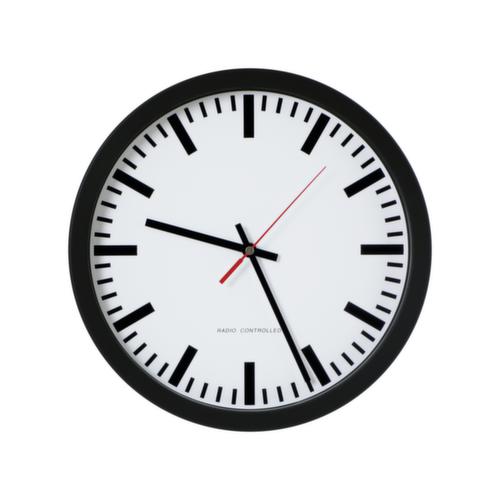 }PEWETA Horloge murale radiopilotée avec boîtier noir, avec cadran à traits, Ø 300 mm