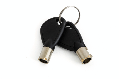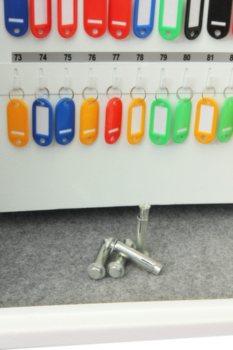 équipé de d'un dispositif de contournement de clé par précaution, en cas d'égarement du code. Les anneaux porte-clés et les porte-étiquettes colorés créent ordre et transparence dans l'armoire. porte à battants. verrouillable avec serrure électronique anti-manipulations. structure en acier. corps avec revêtement antirayures en RAL9003 blanc de sécurité. face avant avec revêtement antirayures en RAL9003 blanc de sécurité. Préparé pour ancrage de la paroi arrière.