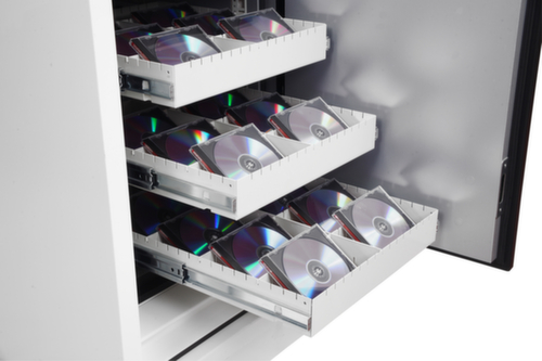 L'armoire est idéale pour le stockage coupe-feu de disquettes informatiques, bandes magnétiques et tous types de supports de stockage de données.