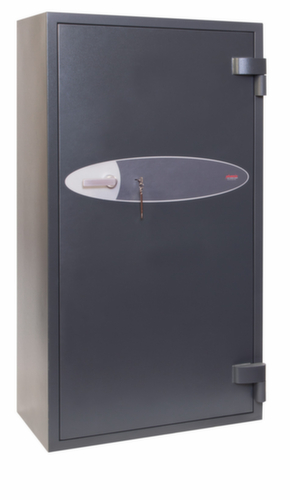 équipement : tablettes. avec porte à battants. verrouillable avec serrure pour clé à double panneton haute sécurité de classe VdS I. verrouillage par des boulons de verrouillage angulaire 3 voies pour une grande robustesse. structure en acier. corps avec revêtement antirayures en RAL7024 gris graphite. face avant avec revêtement antirayures en RAL7024 gris graphite. Préparé pour ancrage de tablette.