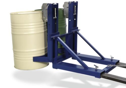 "longDescription": "<h2>Pince à fûts</h2><strong>pour le transport vertical de fûts de 200 litres avec anneau de serrage et moulures</strong><br><ul><li>Robuste et résistant aux rayures - en acier avec revêtement en poudre</li></ul><br><h3>Le choix vous appartient :</h3><ul><li><strong>Surface de charge et force plus élevées si besoin</strong> – modèle avec une capacité pour un ou bien deux fûts de 200 litres</li></ul>",