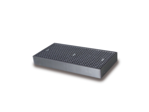 "longDescription": "<h2>Plateau à fond plat</h2><strong>facile à manutentionner grâce à sa faible hauteur de construction</strong><br><ul><li>Convient aux substances polluantes pour l'eau et inflammables.</li><li><strong>Protection grande surface</strong> contre les éclaboussures et les pertes à l'égouttage lors de la manutention des fûts</li><li><strong>À manutentionner par gerbeur et chariot de levage</strong> grâce à la faible hauteur de construction et aux rampes d'accès adaptées</li><li>Hautement chargeable - avec des grilles amovibles</li><li><strong>Structure modulaire stable</strong> - en tôle d'acier galvanisée à chaud épaisseur 3 mm</li></ul><br><h3>Le choix vous appartient :</h3><ul><li><strong>Dimensions personnalisables</strong> grâce aux modules variés</li></ul><br><strong>Dispositions légales</strong><br>Construction des bacs de rétent. agréée par les autorités. Pour stockage abrité de produits dangereux pour l'eau et inflammables.<br>",