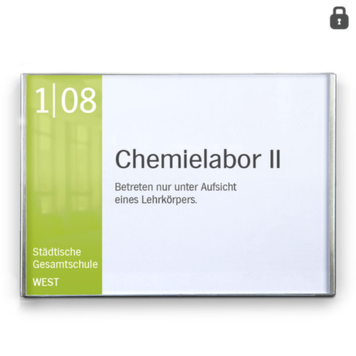 "longDescription": "<h2>Enseigne murale</h2><ul><li>Cadre en acier inoxydable</li><li>Façade en verre acrylique</li></ul><br>L'enseigne murale de la série Lite Secure est particulièrement adaptée à tous les espaces publics. La vis spéciale à six pans creux rend le panneau de porte antivol et le protège contre tout accès non désiré. Qu'il s'agisse d'un panneau de porte ou d'un panneau d'information, il remplit toujours son rôle et ne laisse personne dans votre bâtiment sans orientation. Avec son cadre en acier inoxydable et sa vitre en verre acrylique, la plaque de porte est également absolument intemporelle et s'intègre dans n'importe quel environnement.<br>",