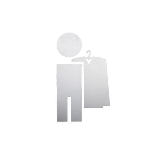 "metaDescription": "Plaque de porte avec silhouette, « vestiaires » - vestiaires, acier inoxydable, autoadhésif, Hxl 110x65mm",