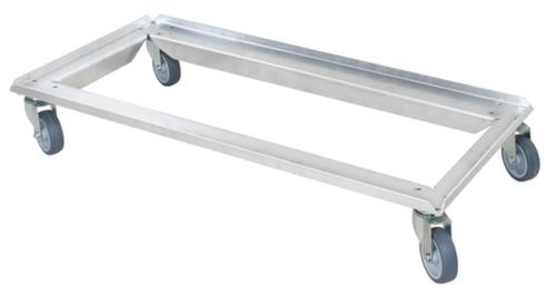 plateforme ouvert. cadre avec coins ajourés facilitant le nettoyage. structure en aluminium. Manœuvre et déplacement aisés grâce à 4 roulettes pivotantes. Ø de roue 100 mm. avec bandage caoutchouc préservant le sol. moyeu avec roulement à billes adapté pour un usage en continu.