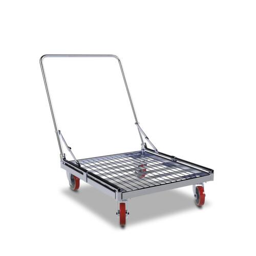 "metaDescription": "Plateau roulant avec poignée - force 500kg, Lxl 660x815mm, poignée, barre de poussée rabattable, métal, bandage PU",