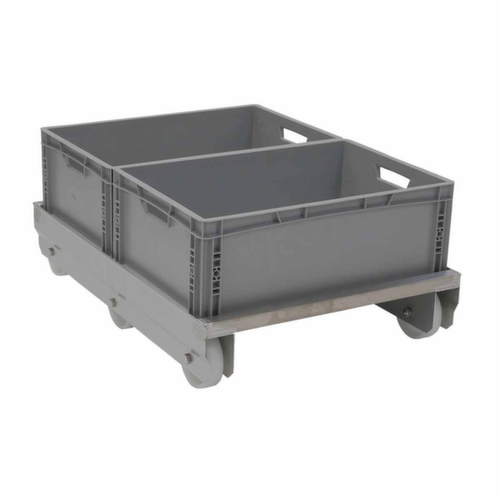 "metaTitle": "Plateau roulant en acier inoxydable pour bac norme Europe, force 300 kg, polyamide bandage - Plateaux roulants pour bacs norme Europe",