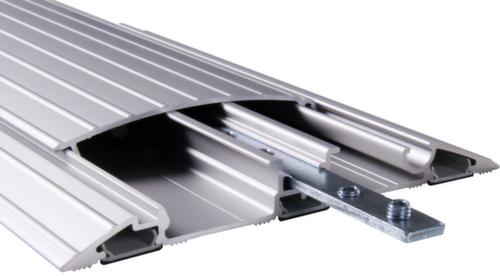 "longDescription": "<h2>Protection pour câbles rabattable</h2><strong>Droit</strong><br><ul><li>Système de montage entièrement recyclable en aluminium</li><li>Avec lames antidérapantes </li><li>Surface incurvée </li><li>Avec couvercle rabattable facilitant l'accès aux guide-câbles</li><li>Avec deux guide-câbles, pour 18 câbles réseau ou 10 câbles d'alimentation</li><li>Séparation possible des câbles de données et des câbles d'alimentation</li><li>Le dessous s'ancre automatiquement dans la moquette</li><li>Dessous avec bandes en caoutchouc pour une adhérence sur sols lisses</li></ul><p>Pour votre attention: L'illustration est sembable au produit.</p>",