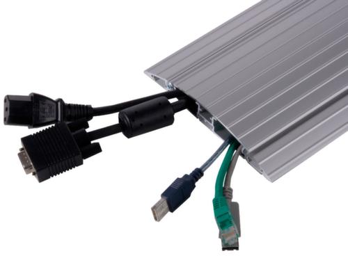 "longDescription": "<h2>Protection pour câbles rabattable</h2><strong>Droit</strong><br><ul><li>Système de montage entièrement recyclable en aluminium</li><li>Avec lames antidérapantes </li><li>Surface incurvée </li><li>Avec couvercle rabattable facilitant l'accès aux guide-câbles</li><li>Avec deux guide-câbles, pour 18 câbles réseau ou 10 câbles d'alimentation</li><li>Séparation possible des câbles de données et des câbles d'alimentation</li><li>Le dessous s'ancre automatiquement dans la moquette</li><li>Dessous avec bandes en caoutchouc pour une adhérence sur sols lisses</li></ul><p>Pour votre attention: L'illustration est sembable au produit.</p>",