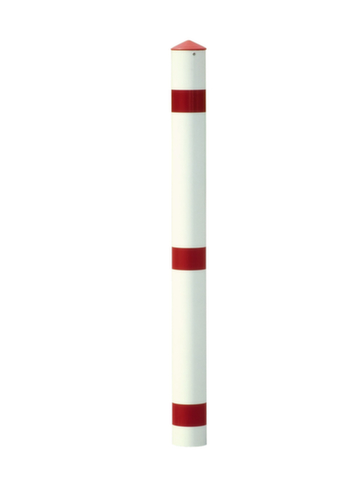 "longDescription": "<h2>Poteau de barrage</h2><strong>mucronate</strong><br><ul><li>Effet de signal - avec 3 bandes réfléchissantes en rouge</li><li>Construction robuste en tube d'acier</li></ul><br><h3>Le choix vous appartient :</h3><ul><li>Barrière permanente ou ponceau de courte durée - à bétonner ou à cheviller en permanence, à enlever ou à renverser.</li></ul>",