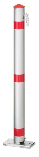 "longDescription": "<h2>Poste automatique</h2><ul><li>Fabriqué en tube rond d'aluminium</li><li>Avec 3 anneaux rouges réfléchissants</li><li>Partie charnière en fonte spéciale stable</li><li>Poteau Ø 75 mm, hauteur au-dessus du sol 900 mm</li><li>Plaque de base de 100x200 mm à cheviller</li><li>Verrouillable avec une serrure à cylindre profilé, 3 clés incluses.</li></ul><br>Avec ce poteau, vous pouvez protéger les allées ou les parkings d'une utilisation non autorisée et vous offrir le plus grand confort d'utilisation. Le pied permet d'appuyer la borne sur le sol. Avec une légère pression sur la pédale, il se redresse grâce au relevage automatique et se verrouille automatiquement. Cela garantit une utilisation facile, même si vous n'avez pas de main libre à ce moment-là.<br><br>Le poteau de verrouillage est fabriqué en tube rond d'aluminium, disponible en blanc ou en naturel. Pour une meilleure visibilité, il y a trois bandes réfléchissantes rouges, qui sont également très faciles à voir dans l'obscurité. La plaque de base est chevillée au sol et est peu encombrante avec ses dimensions de 100 x 200 mm. Pour la protection, le poteau peut être verrouillé avec une serrure à cylindre profilé (3 clés incluses).<br>",
