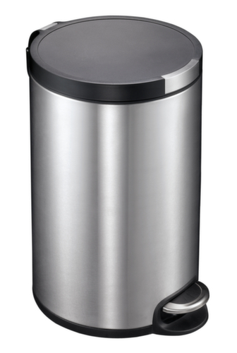 "metaDescription": "Poubelle à pédale EKO Artistic avec couvercle plastique, 12 l - 12l, HxØ 400x250mm, seau intérieur plastique, corps acier inoxydable, couvercle plastique noir, résistant aux traces de doigts, résistant aux traces de doigts",