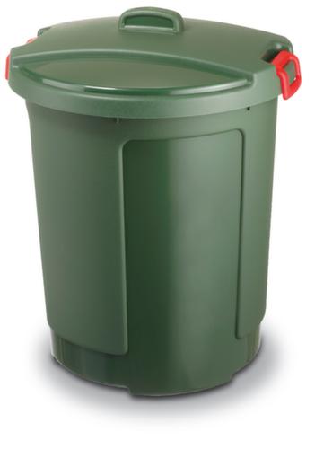 "metaDescription": "Poubelle avec fermetures à serrage sur le couvercle - HxØ 640x390-490mm, corps PP vert, couvercle PE vert",