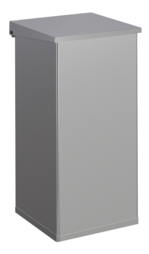 Les principales dimensions de la poubelle Carro Lift en un coup d'œil :à poser au sol. bac résiste au feu. Avec couvercle rabattable - l’ouverture s’effectue manuellement. À fermeture amortie pour une ambiance de travail calme. Vidage facile par couvercle. corps en aluminium avec finition époxy résistante aux chocs et aux rayures gris. couvercle en aluminium gris.