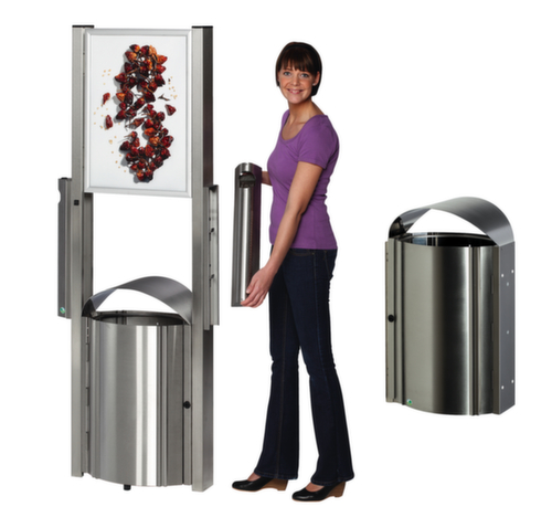 "metaDescription": "Poubelle en acier inoxydable pour l'extérieur - Appareil sur pied ou mural, Appareils sur pied avec ou sans surface publicitaire",