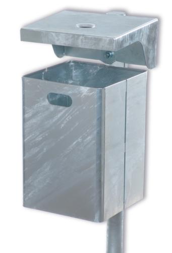 "longDescription": "<h2>Corbeille</h2><strong>haute qualité, durable et résistant aux intempéries</strong><br><ul><li>Protection contre les blessures dues au rebord supérieur</li><li>Absolument résistant aux intempéries et durable - fabriqué en tôle d'acier galvanisé à chaud.</li><li>Protégé du vent et des intempéries - avec un toit de protection</li><li>Pas d'accumulation d'eau - trous dans la base pour l'évacuation de l'eau de pluie</li><li>Vidage facile - y compris la clé triangulaire pour retirer le conteneur</li></ul>",
