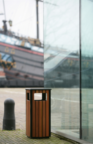 "metaDescription": "Poubelle pour l'extérieur, 36 l, aspect bois - p. extérieur, 36l, HxlxP 810x350x350mm, pose au sol, corps acier/bois aspect bois, partie supérieure noir",