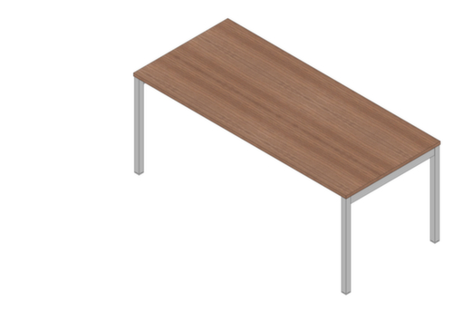 "metaDescription": "Quadrifoglio Table de rallonge à hauteur réglable Practika pour bureau avec piètement 4 pieds, largeur x profondeur 800 x 600 mm, plaque noyer Canaletto - haut. régl., p. 4 pieds, HxlxP 680-760x800x600mm, panneau noyer Canaletto, 2 pieds aspect aluminium",