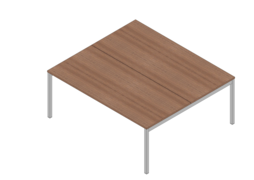 "metaTitle": "Quadrifoglio Table de rallonge à hauteur réglable Practika pour bureau Bench avec piètement 4 pieds, largeur x profondeur 1800 x 1600 mm, plaque noyer Canaletto - Gamme Praktika",