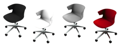 "description": "piètement rotatif alu, coque d’assise PP blanc",
