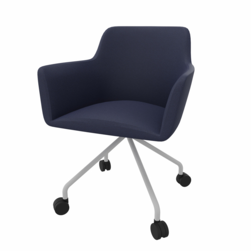 Idéales pour une utilisation dans les espaces d'attente, les salles de réunion et de conférence ou d'autres environnements de bureau. Alliant à merveille praticité et élégance artistique, les chaises de la série City sont idéales comme sièges visiteurs. piètement 4 pieds avec 4 roulettes en tube rond-acier chromé. équipé de avec accoudoirs rigides. coque d’assise en mousse PU en bleu clair.