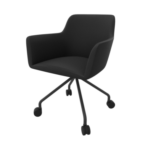 Idéales pour une utilisation dans les espaces d'attente, les salles de réunion et de conférence ou d'autres environnements de bureau. Alliant à merveille praticité et élégance artistique, les chaises de la série City sont idéales comme sièges visiteurs. piètement 4 pieds avec 4 roulettes en tube rond-acier avec revêtement poudre époxy en gris foncé. équipé de avec accoudoirs rigides. coque d’assise en mousse PU avec rembourrage mousse PU en noir.