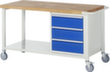 3 tiroirs, 1 tablette, 1 barre de poussée