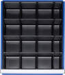 1 tiroir, 1 armoire, 1 tablette, 1 barre de poussée