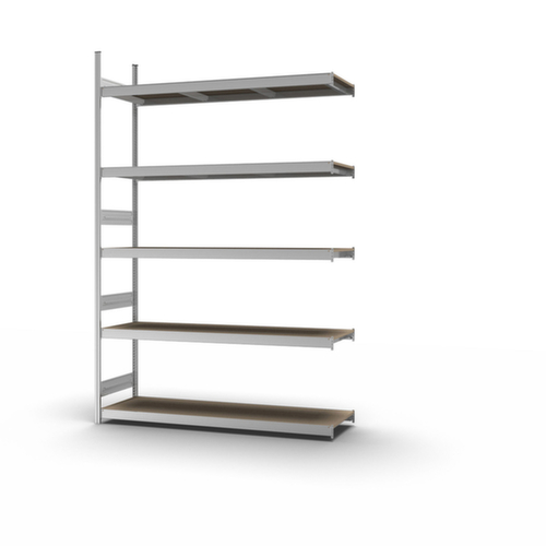 Les principales dimensions du hofe rayonnage grande largeur en un coup d’œil :5 niveaux avec sol en bois. niveaux avec renfort par poutres. hauteurs de compartiments réglables par pas de 25 mm selon l’usage prévu et vos besoins. utilisation unilatéral - conçu pour un montage mural. Les tôles de liaison en profondeur et les embases en acier confèrent une excellente stabilité au rayonnage. Les caches profilés supérieurs assurent une finition soignée. structure en acier, montants avec revêtement en zinc anti-corrosion, traverses avec revêtement en zinc anti-corrosion.