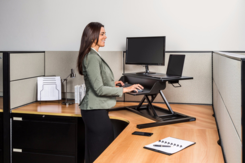 "longDescription": "<h2>Rehausse de bureau à hauteur réglable</h2><strong>transforme chaque table en un poste de travail assis-debout peu onéreux</strong><br><ul><li>Pour un travail plus sain et plus productif</li><li><strong>Ajustement individuel à la taille de l’utilisateur</strong> - hauteur réglable en continu</li></ul><br><h3>Équipement :</h3><ul><li>Avec plateau pour clavier et souris</li></ul><br><h3>Panneau :</h3><ul><li>Offre de l'espace pour deux écrans</li><li><strong>Protège les avant-bras</strong> - grâce à des bords arrondis</li><li>En MDF</li></ul><br><h3>Bâti :</h3><ul><li><strong>Levage et abaissement sans effort</strong> avec un ressort à gaz</li></ul><br><h3>Livraison :</h3><ul><li>Livré complètement monté</li></ul>",