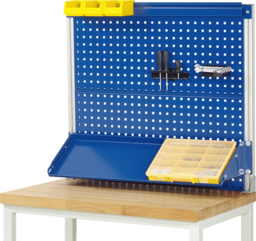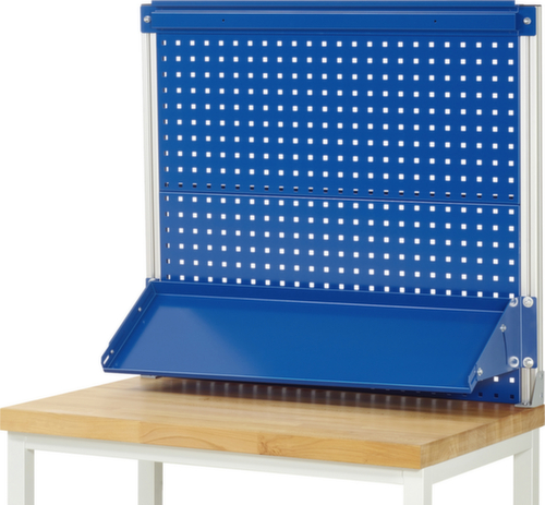 "longDescription": "1 x paire de supports de système pour le montage sur le plan de travail. 2 x panneau perforé L915 x H450 mm avec perforation de système à 4 côtés (perforation 10x10 mm, distance trou centre-trou centre 38 mm) pour accueillir des accessoires de panneau perforé. 1 x étagère métallique inclinable L915 x P300 mm ; se relève de tous les côtés. 1 x rail de support L915 mm pour accueillir des bacs de stockage à façade ouverte (bord de suspension ouvert sur la face arrière requis) et/ou une barre d'énergie. x Rail de support de B915 mm pour recevoir des bacs de stockage à façade ouverte (bord d'accrochage ouvert requis à l'arrière des bacs de stockage à façade ouverte) et/ou une barre d'énergie.,La hauteur de montage des éléments complémentaires peut être ajustée à l'intérieur des supports du système.,Les supports du système (profilé en aluminium 40x40 mm) sont vissés directement sur le plan de travail au moyen d'un adaptateur de montage. Les supports du système sont dotés d'une rainure de profilé sur les 4 côtés afin de pouvoir être utilisés de tous les côtés.,Convient : Etablis série 8000, Etablis série 7000, Etablis lourds, Etablis mobiles série 8000, Etablis avec châssis série 8000, Postes de travail à hauteur réglable électriquement série adlatus 600.,Montage sur : Plan de travail.,Veuillez noter : L'épaisseur du plan de travail doit être d'au moins 40 mm et il doit s'agir d'un plan de travail avec un noyau solide.,Montage de : Eléments complémentaires (accessoires du système),Capacité de charge totale max. 100 kg,Capacité de charge max. 30 kg par élément complémentaire,Livraison partiellement montée,Revêtement par poudre,Garantie de qualité 5 ans,Made in Germany,<br>",