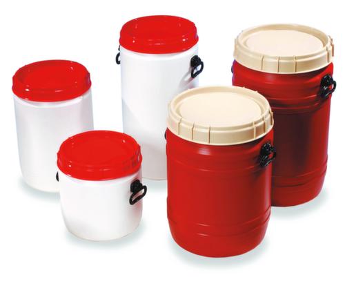 "description": "HxØ 250x338mm, 17l, ouverture de remplissage de Ø 295mm, PE, fût/couvercle blanc/rouge",