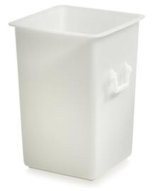 "description": "HxLxl 996x600x800mm, 300l, ouverture de remplissage de Ø 150mm, av. soupape vidange LN 50, ouverture scellée av. platine alu, HDPE, blanc nature, palette plastique",