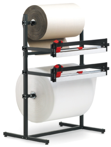 "longDescription": "<h2>Dérouleur double</h2><strong>peu coûteux et fiable</strong><br><ul><li><strong>Toujours la bonne longueur</strong> - livre le papier, le carton ondulé ou le film rapidement et aisément dans la longueur souhaitée</li><li><strong>Utilisation flexible</strong> comme dérouleur autonome ou intégrable dans des postes d'emballage existants</li><li>Robuste et résistant aux chocs - construction robuste en acier avec revêtement en poudre</li><li><strong>Bonne stabilité</strong> grâce aux pieds</li><li>Convient pour papier, carton et film souple</li><li><strong>Possibilités accrues</strong> - avec 2 dispositifs de coupe et réglage en continu de la hauteur de sortie du matériel</li><li><strong>Couleurs vives</strong> - éléments de commande rouges</li><li><strong>Coupe sécurisée dans les deux sens</strong> - chariot de coupe ergonomique</li></ul>",