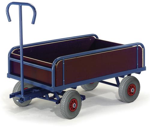 "metaDescription": "Rollcart Chariot à timon 2 axes avec direction, force 400 kg, plateau longueur x largeur 930 x 535 mm - force 400kg, plateau Lxl 930x535mm, panneau bois, 4 parois, RAL5010,4roues, bandage air",