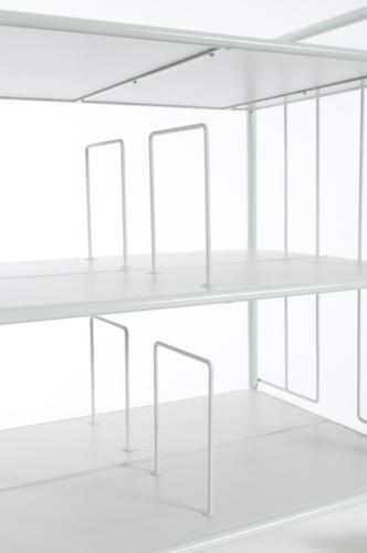 "value": "3 tablettes, ridelles grillagées, étriers de séparation"