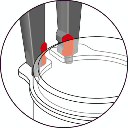 "longDescription": "Composition courante, Pointes enfoncées en acier à roulement hautement résistant à l'usure, Géométrie de pointe anti-torsion, Particulièrement adapté aux endroits difficiles d'accès, Pour circlips intérieurs, Avec mâchoires droites et coudées à 90<br>",