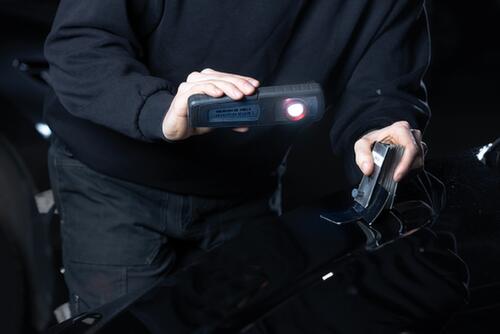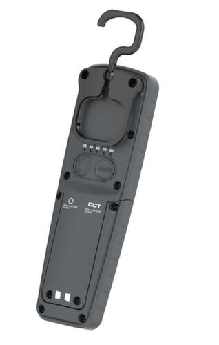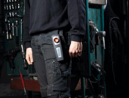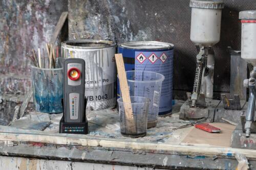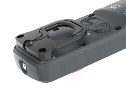 avec aimant puissant intégré et un crochet rotatif pour la fixation pratique directement sur la ceinture de travail. durée d’éclairage 2 - 10 h (les indications « de/à » correspondent aux valeurs min. et max. de lumens). spot 3 h. angle de rayonnement 80 °. Avec variateur de 10 à 100 %. Permet de régler la puissance lumineuse de manière optimale pour chaque tâche. La tête de lampe flexible pivote à 180°. durée de charge 4 h. affichage avec indicateur de charge de la batterie. avec batterie. Compatible avec lithium-ions. résistant à la température de -10 °C à +40 °C °C. indice de protection IP65 : infiltration de poussière, de jets d'eau de toutes les directions.