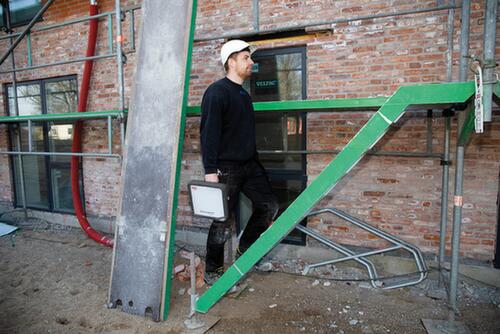 avec poignée intégrée et pied de réglage pour un montage sur un montant à trois pieds. Vous pouvez ainsi déplacer et installer le projecteur facilement et exactement là où vous avez besoin de lumière. durée d’éclairage 2,25 - 4,5 h (les indications « de/à » correspondent aux valeurs min. et max. de lumens). angle de rayonnement 100 °. avec variateur à 2 niveaux. avec fonctionnement réseau/sans fil. Compatible avec METABO/CAS. résistant à la température de -10 °C à +40 °C °C. indice de protection IP54 : Dépôt de poussière à l’intérieur, éclaboussures d’eau dans toutes les directions avec alimentation électrique. En cas de fonctionnement sans fil, la lampe a un indice de protection IP30 : corps étrangers > 2,5 mm.