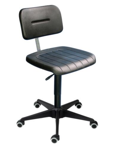"metaDescription": "Siège d'atelier ESD, assise mousse PU avec renfort en acier noir, avec roulettes - siège standard noir, PU, assise H 450-580mm, pièt. 5 br. a. revêt. plastique, roulettes",