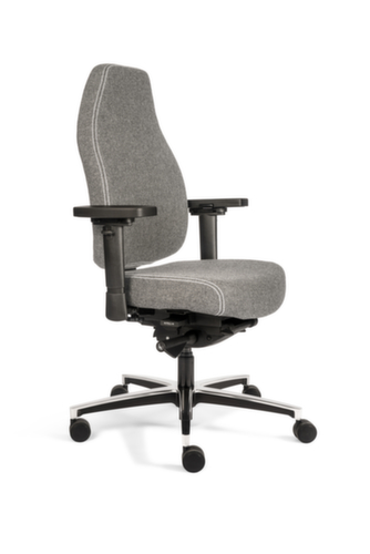 "longDescription": "<h2>Siège de bureau pivotant</h2><br>Assise et dossier :<br><h3>Technologie BIO Seat :</h3><ul><li>Deux matériaux différents dans l'assise pour la répartition confortable de la pression et pour le soutien du bassin</li><li>S'adapte toujours au poids de l'utilisateur</li><li>Assise et dossier rembourrés</li><li>Revêtement 100 % feutre de laine avec coutures tricotées</li><li>100 000 tours Martindale</li></ul><br>Mécanique d'assise :<br>Technologie Therapod® Sense Fit brevetée : <br><ul><li>Les bandes élastiques dans le dossier s'adaptent au dos</li><li>Les bandes peuvent être réglées séparément, p. ex. en cas de lordose il est possible de fixer les bandes de sorte qu'elles s'adaptent parfaitement au dos et, par là même, offrent un grand soulagement</li><li>La grande surface de contact entre le dossier et le dos offre un soulagement supplémentaire</li><li>Les bandes sont facilement et rapidement accessibles via la fermeture éclair située à l'arrière du dossier</li><li>Mécanisme synchrone avec réglage par ressort automatique</li><li>Profondeur d'assise réglable jusqu'à 60 mm</li><li>Dossier à hauteur réglable</li></ul><br><h3>Bâti :</h3><ul><li>Accoudoirs doux réglables en hauteur, en largeur et en profondeur</li><li>Hauteur réglable en continu avec vérin à gaz</li></ul><br><h3>Pied en croix :</h3><ul><li>En aluminium poli</li><li>Avec roulettes universelles pour moquettes et sols durs</li></ul><br>Garantie 15 ans<br>",