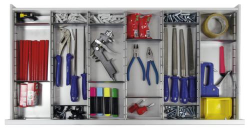 "longDescription": "<h2>Matériel de classification</h2><strong>Tiroirs facilement et rapidement divisés</strong><br><ul><li>Cloisonnement individuel - cloisons librement enfichables</li><li>Flexible - peut être divisé différemment à tout moment</li><li>Robuste et durable - en acier galvanisé</li></ul>",