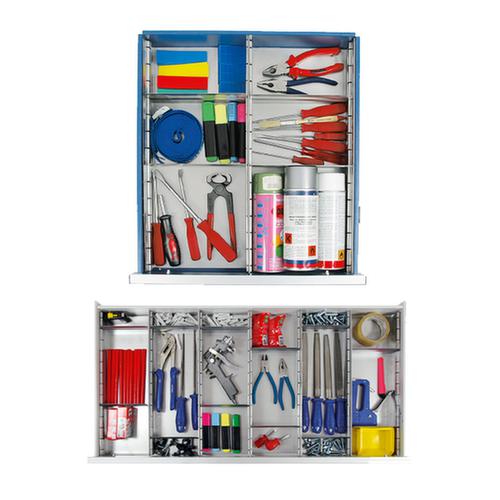 "longDescription": "<h2>Matériel de classification</h2><strong>Tiroirs facilement et rapidement divisés</strong><br><ul><li>Cloisonnement individuel - cloisons librement enfichables</li><li>Flexible - peut être divisé différemment à tout moment</li><li>Robuste et durable - en acier galvanisé</li></ul>",