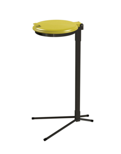 Avec couvercle rabattable - l’ouverture s’effectue manuellement. anneau de serrage pour la fixation de sac. à poser au sol. structure en acier avec finition époxy résistante aux chocs et aux rayures DB703 anthracite. couvercle en plastique jaune. soubassement partie inférieure avec 4 embouts plastiques.