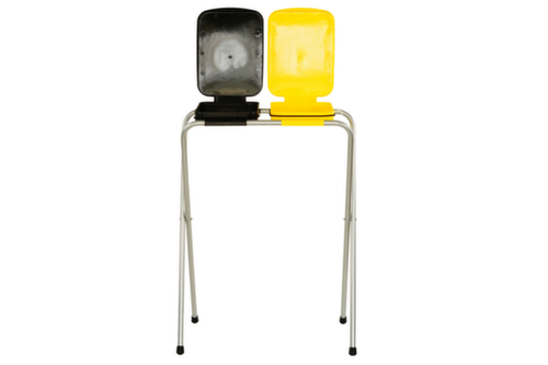 "metaDescription": "support pour sac poubelle - p. 2x120l, HxlxP 860x630x380mm, structure acier argent, couvercle ABS noir, jaune, patins",