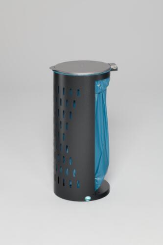 "metaDescription": "support pour sac poubelle - p. 1x120l, HxlxP 850x380x440mm, corps acier argent antique, couvercle métal argent, perforé",