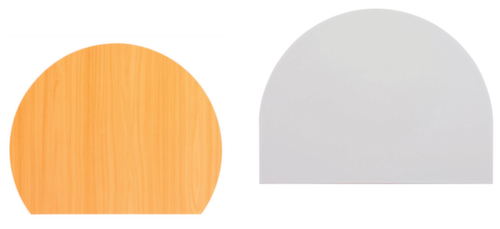 "description": "hauteur réglable ou fixe, semi-ronde ou ronde, avec pied d'appui, Panneau en différents coloris",