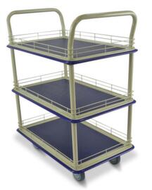 Vous cherchez un moyen de transport universel pour le bureau ou l’entrepôt ? Notre conseil : jetez un coup d’œil aux tables à roulettes et aux chariots étagères UDO BÄR. Il en existe différents modèles et divers accessoires vous permettent de surcroît d’adapter parfaitement nos modèles de table roulante et de chariot étagère sur roulettes en fonction de vos besoins.