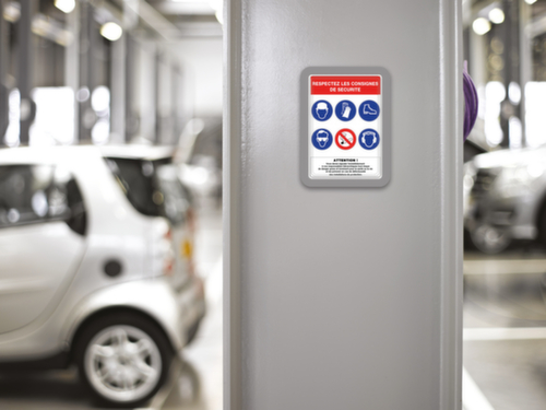 "longDescription": "<h2>Cadre d’information Magneto Solo</h2><strong>pour encadrer et décrocher rapidement des documents</strong><br><ul><li><strong>Couleurs vives et flexibilité</strong> - cadre en PVC teinté dans la masse</li><li><strong>Protection contre les projections d'eau et la décoloration</strong> grâce à un film antireflet</li><li><strong>Vue optimale</strong> - utilisable à la verticale et à l'horizontale</li><li><strong>Facile à fixer</strong> - dos magnétique</li></ul>",