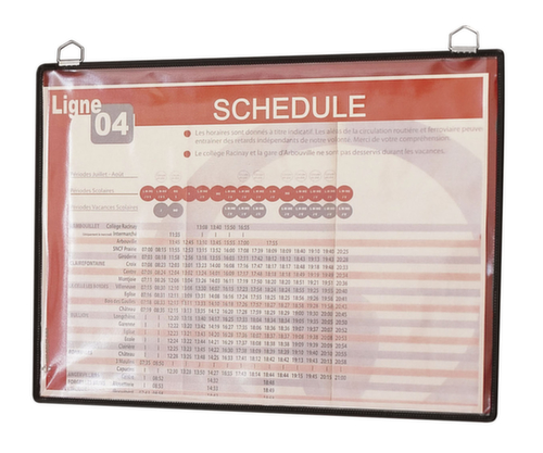 "longDescription": "<h2>Sac de présentation</h2><strong>Présenter des informations bien protégées</strong><br><ul><li>Robuste et accrocheur - cadre en fil d'acier avec revêtement plastique coloré.</li><li>Facile à suspendre grâce à un solide cintre en métal.</li><li>Lisible par tous les temps - le panneau est en plastique non réfléchissant.</li></ul>",